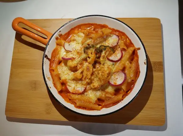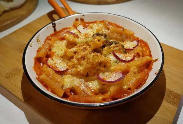 濃郁的紅醬,品嚐到番茄的酸甜,濃郁卻不膩口,筆管麵Q彈帶有嚼勁,最後灑上起司焗烤,香氣逼人~