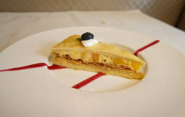 吃的到鬆軟的千層餅皮,綿密香甜的卡士達,酥脆的派皮,最後芒果唇齒留香,非常有層次感,整體甜度不高