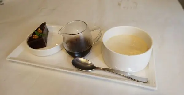 使用有機黃豆製成的豆花,一上桌是溫熱的,沒有多餘的甜加入,綿密樸實的豆香味,一旁附上黑糖漿,