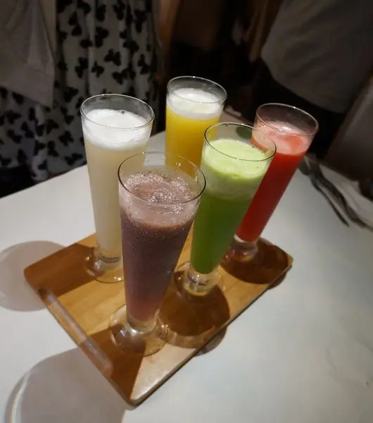 我們集合了所有的現榨果汁,下面的木板是拿主餐的木板,拍起來更美呀~