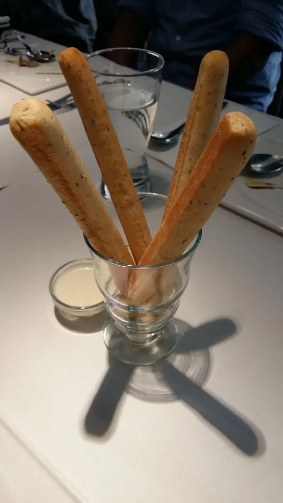剛烤好外略酥脆鬆軟口感的火柴麵包,要趁熱品嚐,咬下迷迭香氣慢慢由舌尖散發出來,值得細細品嚐。若有需要續加可隨時告知服務人員〜