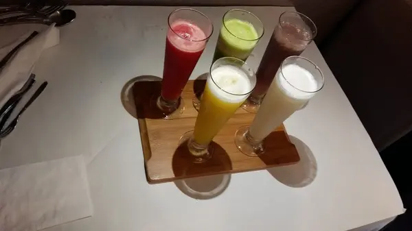 搭配各式五彩繽紛現榨健康蔬果汁補水也補元氣,正是飯後最好體內環保,提供豐富的膳食纖維飲品。
