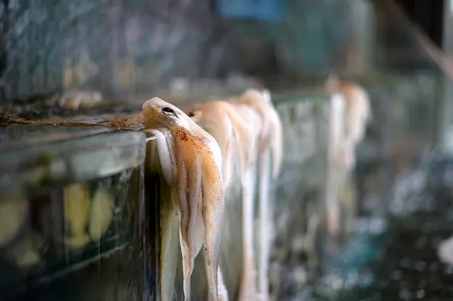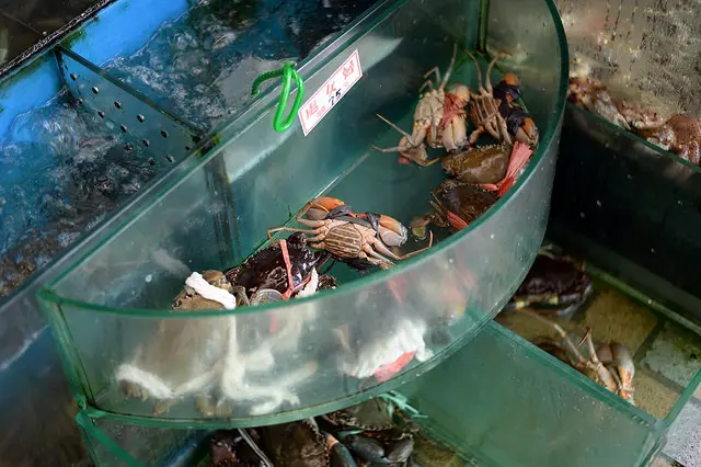 隨手指著鮮活到水族箱外面的中卷再補一記:「今天的客人全部都要活的喇~」