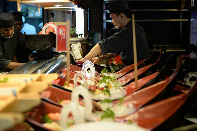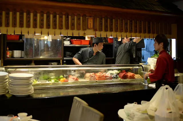 今天大廳辦喜宴,我們坐在靠近壽司吧檯附近;