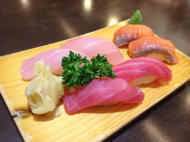生魚片蠻大片的,不會很厚是我喜歡的大小,吃起來很新鮮,飯也拿捏的不錯,不過魚的筋有點多不太好咬斷。