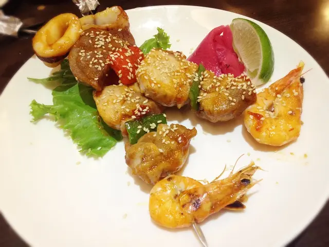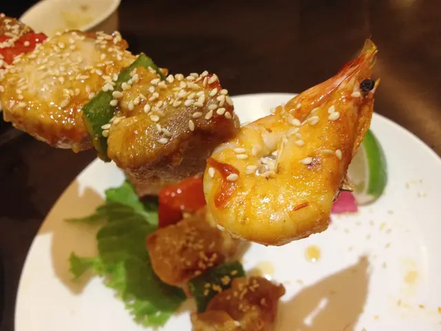 每次吃日本料理都會想點份串燒試試,這裡也蠻多種,一眼看到這個有蝦、花枝、牛肉、雞肉等的盛和串燒。