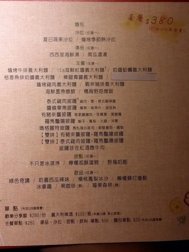 老實說這種價格太殺了!很多義式餐廳單點都要三百八以上