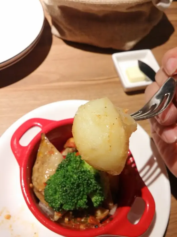 馬鈴薯吸收了大量的湯汁沾點底部的胡椒一起享用非常有飽足感!