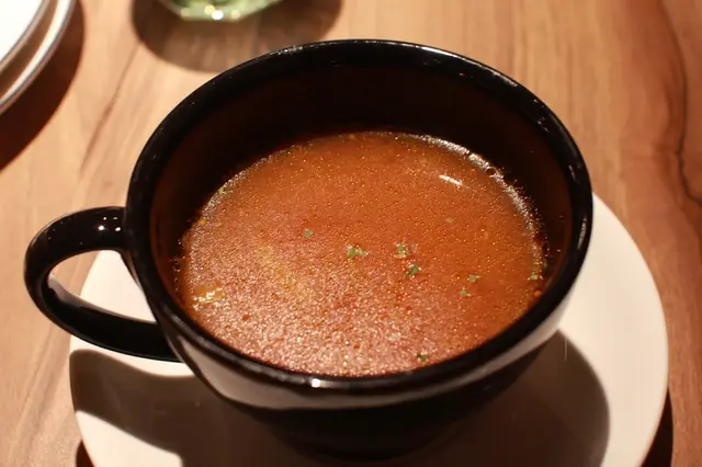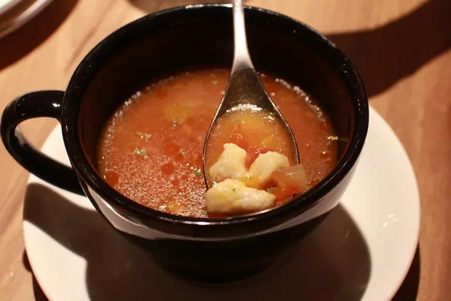 洋蔥、番茄、奶油等,加上台灣鯛魚做成的湯品