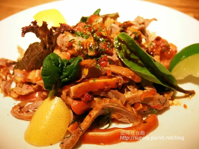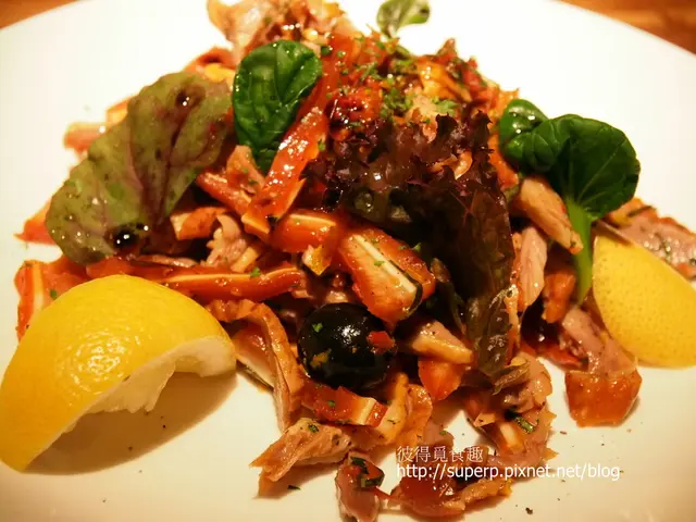 烤鴨與煙燻豬耳朵$300(頗妙的組合,把烤鴨跟燻豬耳朵跟一些西式香料拌在一起。是頗下酒的,但友人覺得吃起來並沒有很為之一亮的感覺。如果沒有特別說明,會覺得就是比較好一些的滷味)