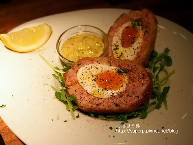 肉丸子炸蛋$180(基於怕菜太多,問老闆可不可以只做半份,老闆很爽快的答應了。把蛋鑲入肉丸內一起炸,難得的是蛋黃呈現溏心蛋的模式,而且肉丸也很夠味,撒了綜合香料跟橄欖油,搭配微酸類似塔塔醬的醬汁,我很喜歡,大推!)