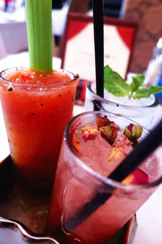 點了三樣特製的調酒,每杯有不同的香氣,帶著玫瑰的香氣,淡淡的酒精氣息。