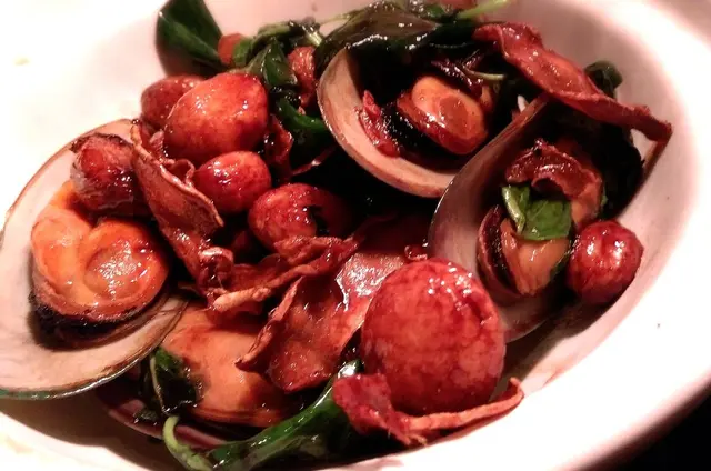「三杯淡菜」第一次吃到淡菜用三杯口味烹調,直覺該來杯啤酒了!