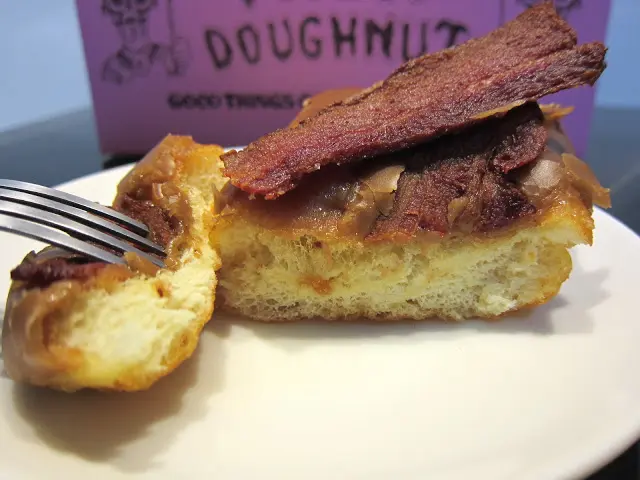 這個很特別的培根楓糖甜甜圈是店內唯一的鹹味甜甜圈