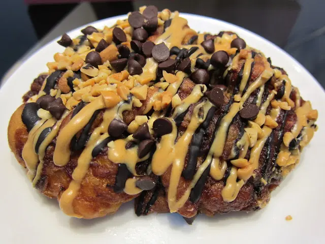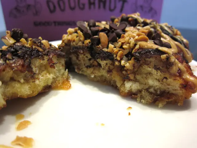 而且咬在嘴裡還是回鍋油的味道,吃幾口上面的巧克力和花生醬我就棄守了......