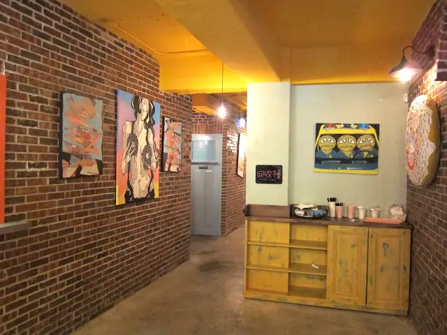 店面很寬闊,我喜歡磚牆配落地窗+那幾隻搞怪圖像的組合