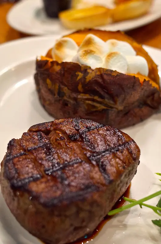 ▲達拉斯菲力牛排 6 oz+棉花糖烘烤地瓜