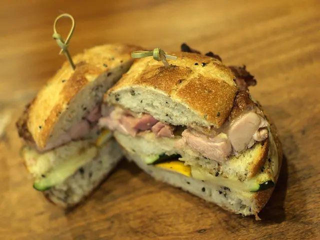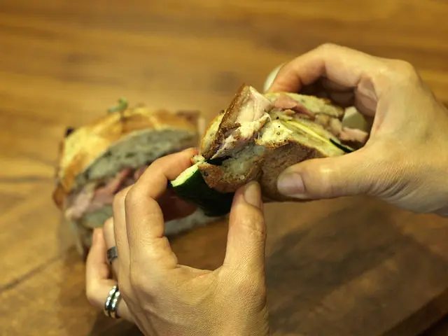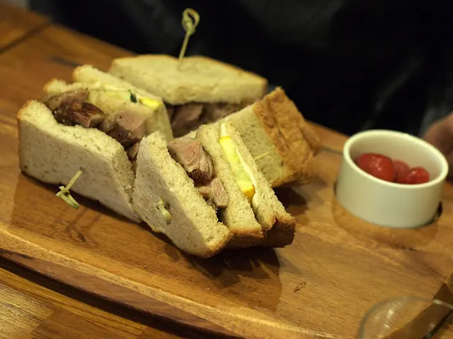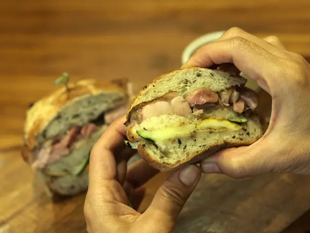 這一口下去肯定是嘴巴、三明治都變形的吃相很狼狽,