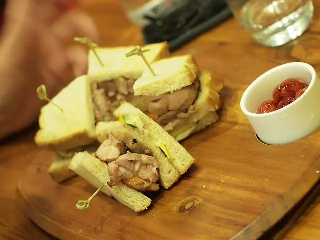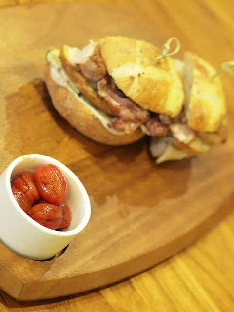 這是正常版的低溫烹調鮮嫩雞腿三明治/附上一小盅漬番茄(NT$280)