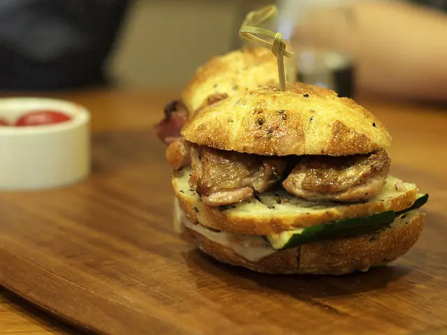 這是我的版本的低溫烹調鮮嫩雞腿三明治(NT$280)