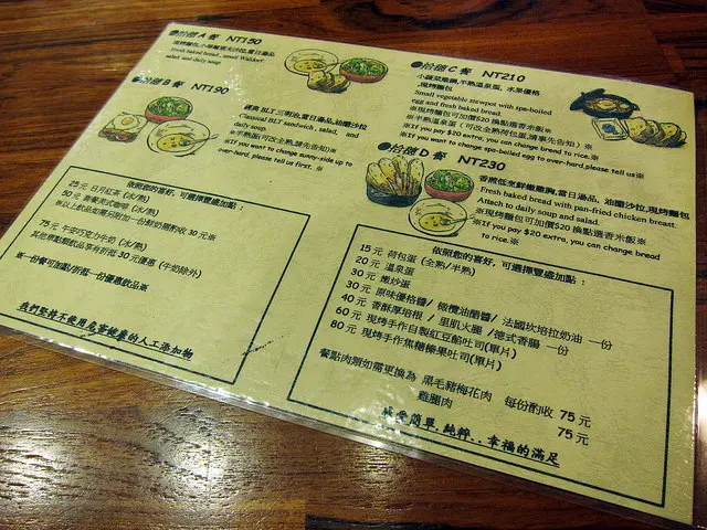 平日有商業午餐的菜單;價格介於NT$150~230之間,