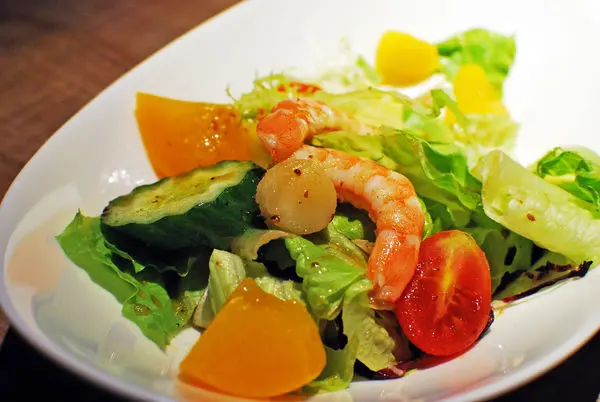 沙拉部分,我點的是水蜜桃甜蝦佐干貝和風醬。