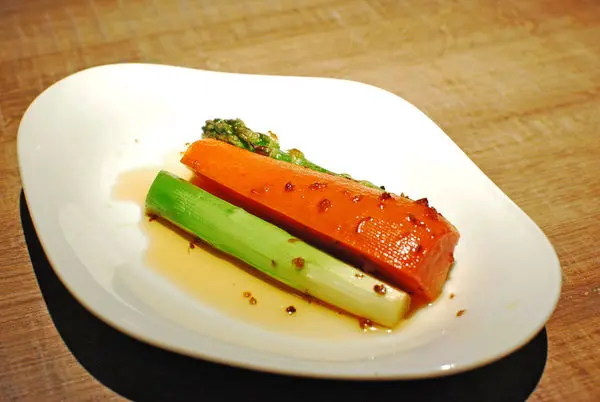 青翠肥嫩的大蘆筍是我的最愛,鬆軟的紅蘿蔔帶著蜜香甘甜也很好吃,被我拿來解焗烤飯的膩口之用。