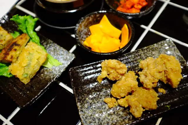 前菜我們各點了海鮮蔥煎餅和香酥雞塊,煎餅表現中規中矩,而雞塊距離香酥有點遠,不曉得是不是被重覆加熱過,肉質乾柴,口感有點硬之外皮粉粉的,感覺不是很用心,最後我們也沒吃完。