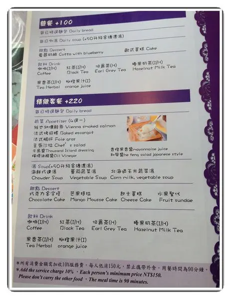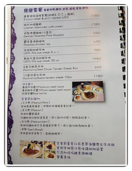艾蜜莉的單價並不便宜,牛排套餐在$700-1400之間,大約都在$1000上下