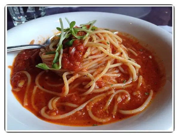 番茄義大利麵:這盤的份量就比較小,盤子都小1/4左右,這盤就有義大利麵的口感了,味道偏酸還滿香的。