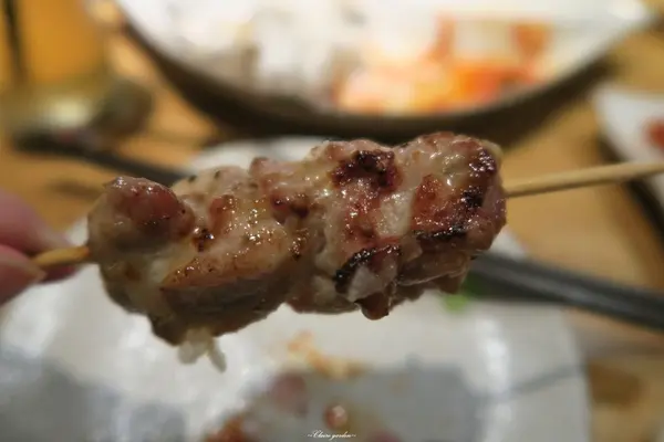 由左而右分別是去骨雞肉串、厚切霜降豬肉、醬燒牛肋條