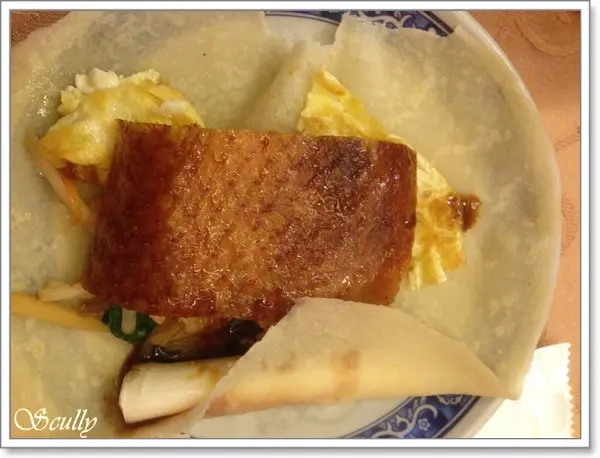 合菜帶帽$228:味道挺清淡且不油膩,但烘得酥酥的配上各式口感的青菜,還不錯吃,我還拿來包餅皮吃,也很搭~