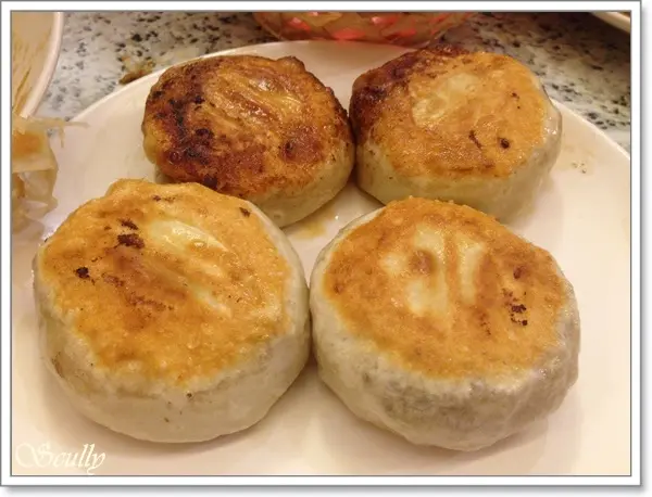 牛肉餡餅$180(2份):怎麼大小都不一樣呢???大概是因為手工做的吧!裡面有滿滿燙口的肉汁,隨便一咬就會噴汁被燙到,但又一定要趁熱吃,別有一番自謔的快感,肉汁吃起來挺清爽的不油膩,還不錯;外皮很酥脆咬下還會喀滋喀滋的~