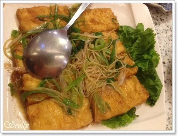 鍋塔豆腐$188:有點像是老皮嫩肉,雞蛋豆腐裹著酥酥的外衣去炸,外酥內嫩,更特別的是他有加椒鹽,所以有鹹酥的香味又有醬汁的感受,讓我驚艷ㄚ,超級好吃~~