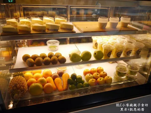 蛋糕櫃裡擺放著手工的生乳酪蛋糕、奶酪與店裡會用到的新鮮水果