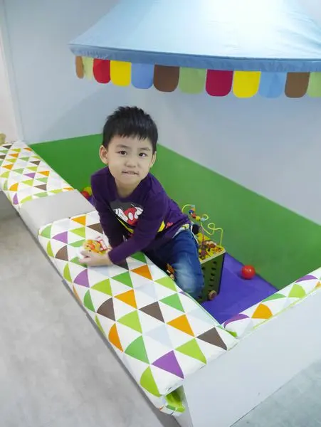 坐在玩具區前方的座位,顧小孩就是會如此方便老實說我就是為了麵包超人麵包店來的