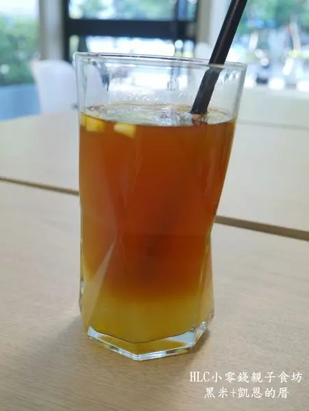 僅切了少許小蘋果丁裝飾,漂亮的分層可以維持很久,喝起來滿像柳橙紅茶的