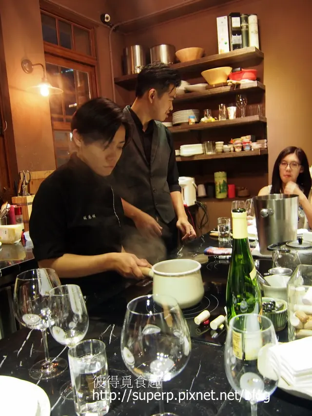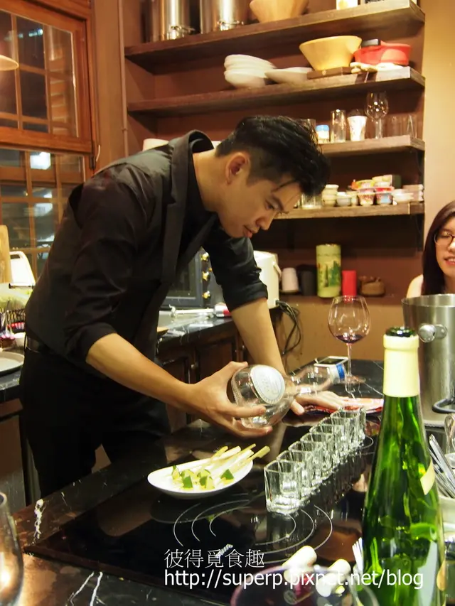 私廚的部份會在三樓用餐。廚師跟店長兼調酒師就在我們面前處理菜色,而且會跟顧客交流。