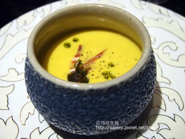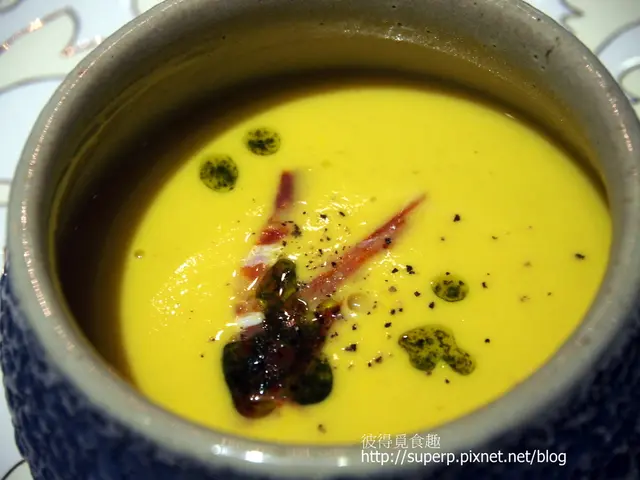蔬菜濃湯(用紅蘿蔔和洋蔥跟起司和高麗菜以及其他蔬菜,上面是伊比利豬臘腸,帶些微鹹,好喝,推!)