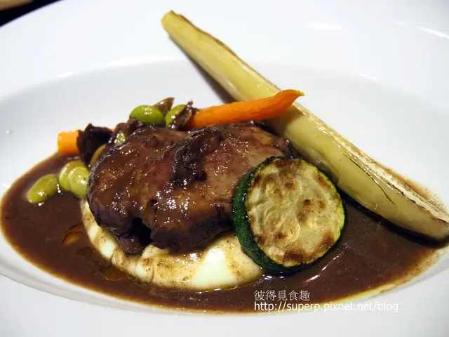 紅酒燉豬肉(豬肉用的是嘴邊肉,已經燉到入口即化。馬鈴薯泥粘稠而且超級細緻,搭配紅酒醬汁,真的好吃到不行。是我吃過最棒的馬鈴薯泥之一。毛豆和紅蘿蔔以及烤節瓜和玉米筍據說都是用有機食材,也都很鮮美。大推!)