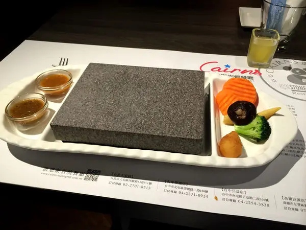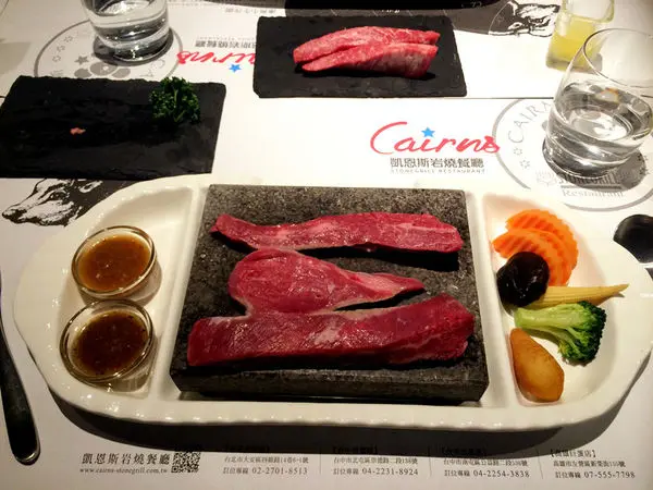 「凱恩斯 Cairns」正是澳洲的地名,這裡最具特色的「無具炊事石煮法」 idea 也來自是澳洲毛利人 (類似我們台灣原住民石板烤肉的概念),用天然石材烤肉導熱均勻,即使溫度很高食物也不容易烤焦,而凱恩斯引用這樣的概念進軍台灣美食市場。