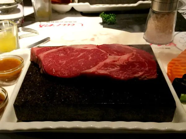 上主菜前石板先上來了,燒燙燙的主角有400度的高溫,我是不敢以身測試啦XD 但如果要帶小孩子來一定要特別小心!!