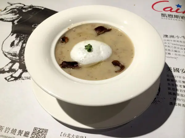 也是濃湯類型,整碗都可以吃到菌菇的小碎粒,加上奶泡攪拌後很香醇,好喝!!