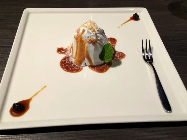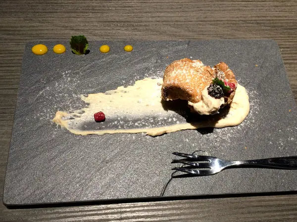 凱恩斯的擺盤一向都很有誠意很漂亮,這次的鴨胸我覺得還好,但其他配菜、水果(還有無花果哩!)滿好吃,底下是綿密的南瓜泥唷!!