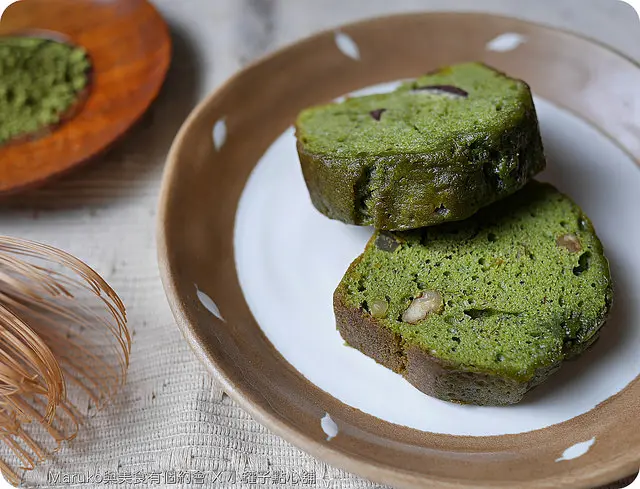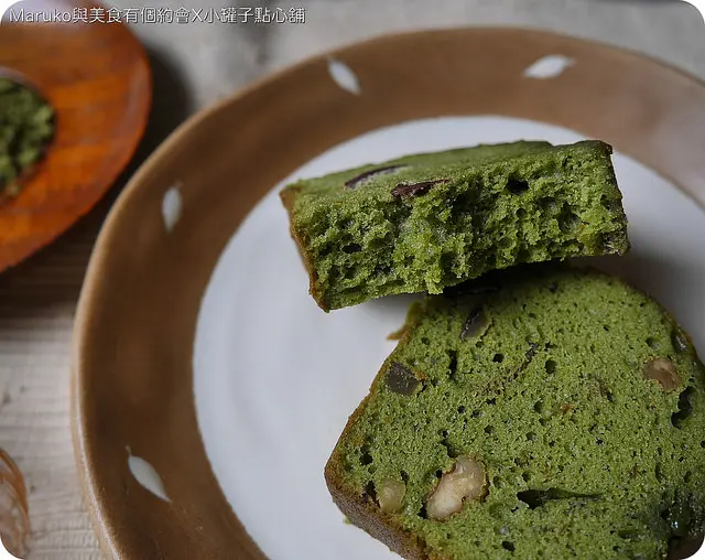 看似簡單的抹茶磅蛋糕可是使用了不少食材,除了蛋糕基底是抹茶的風味以外還加入了栗子、橙皮