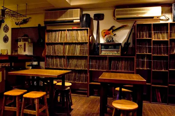 整櫃黑膠唱片,閒談用餐間時而穿插搖滾、藍調及各式舊時年代經典老歌。