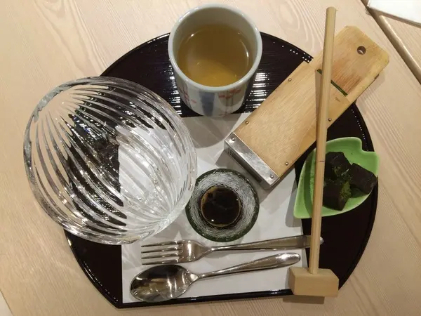 店員會提醒說要用小木槌把葛粉擠出條狀~