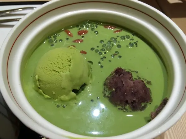 但等抹茶冰淇淋融化之後, 整碗就會變得有點太甜了~