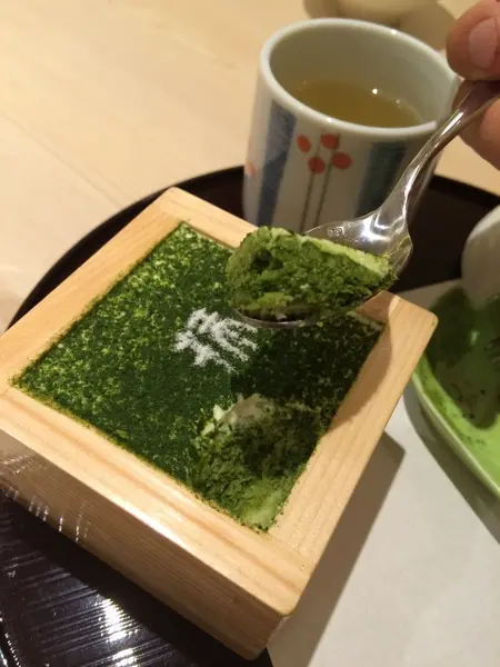 但不知為何, 今天來的三道甜點都沒有灑滿抹茶耶, 小小失望~