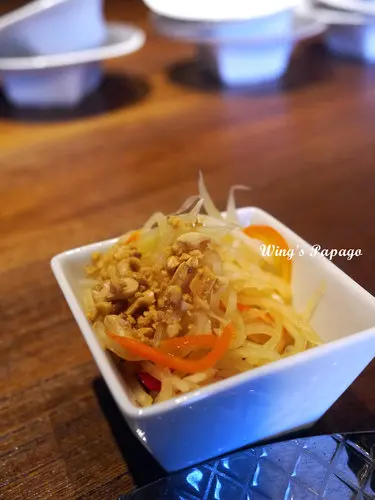 ※一開始先送上的是涼拌青木瓜,這個可無限續,清脆的青木瓜絲配上酸酸辣辣的調味好開胃,吃完了服務生會來補充,不知不覺就續了兩盤。